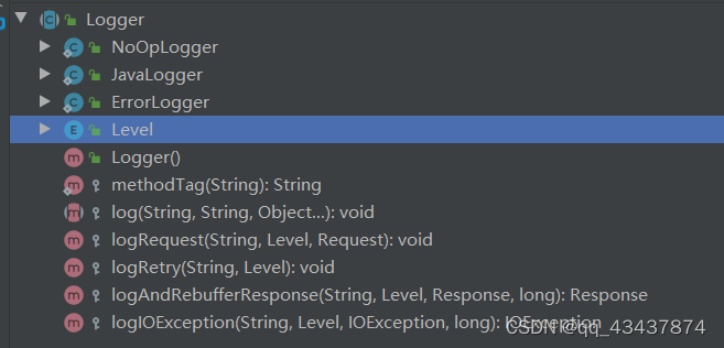 该Logger是 Feign 自己提供的类,该日志类,提供了打印请求日志、响应日志、IO 异常、重试日志等方法。