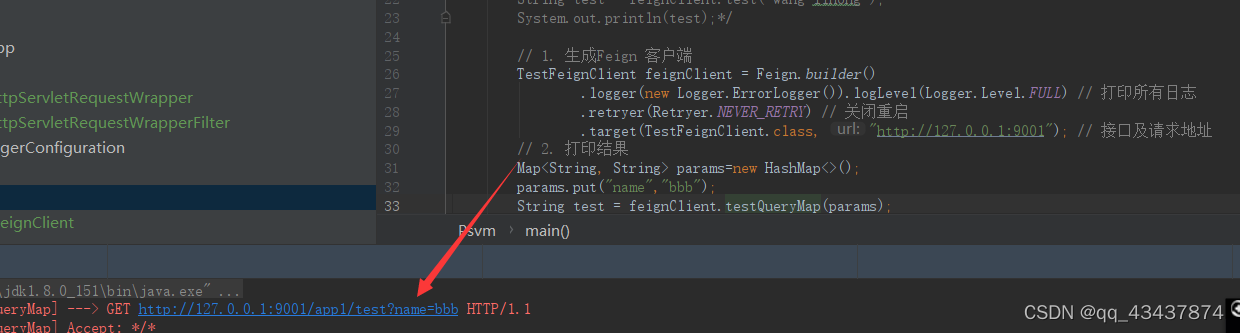.target(TestFeignClient.class, "http://127.0.0.1:9001"); // 接口及请求地址