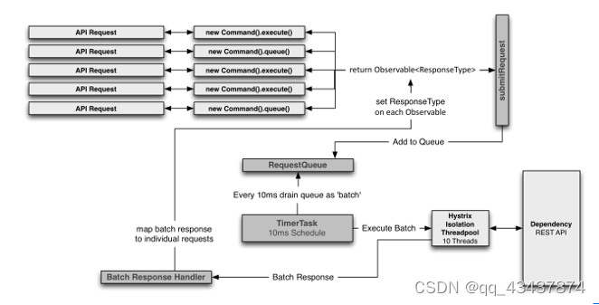 例如,如果您将 a 配置 HystrixCommand 为支持任何用户对检索电影评级的依赖项的请求进行批处理,那么当同一 JVM 中的任何用户线程发出此类请求时,Hystrix 会将其请求与任何其他请求一起添加到同一个折叠的网络通话。