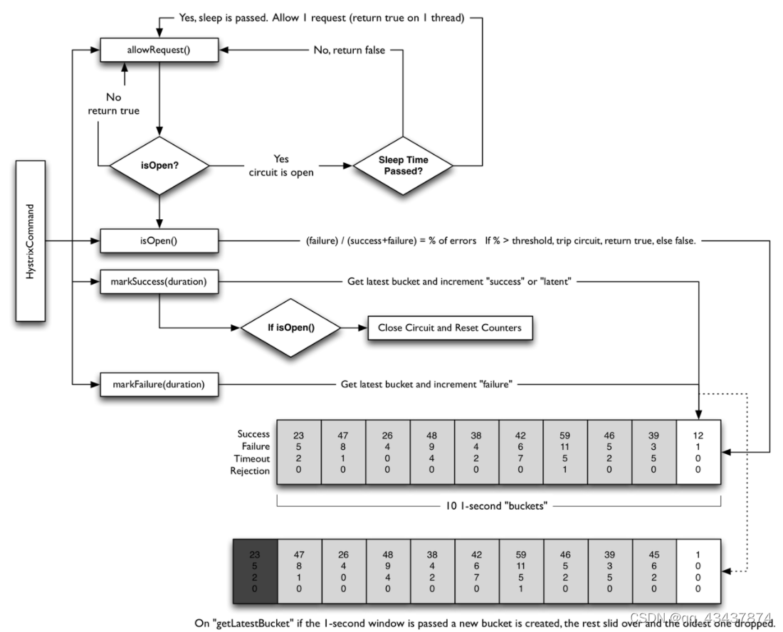 下图显示了HystrixCommandorHystrixObservableCommand与HystrixCircuitBreaker交互及其逻辑和决策流程,包括计数器在断路器中的行为方式。