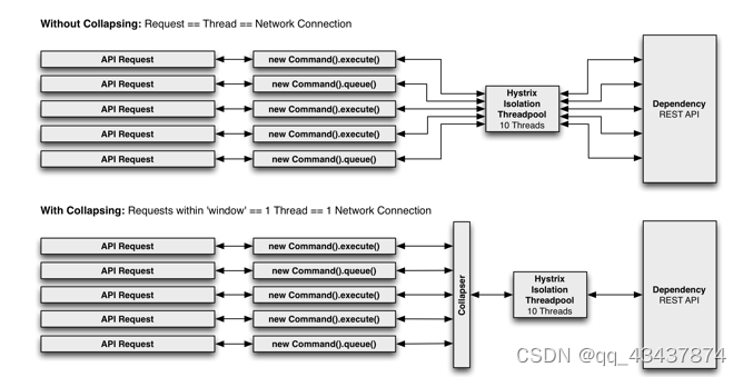 使用请求折叠来减少执行并发 HystrixCommand 执行所需的线程数和网络连接数。请求折叠以自动方式执行此操作,不会强制代码库的所有开发人员协调手动批处理请求。