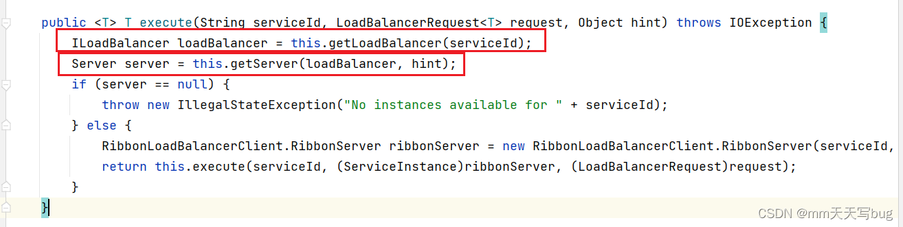 获取到了url、主机名、和服务的id,再将这些信息作为参数传到LoadBalancerClient(this.loadBalancer)的execute的方法中