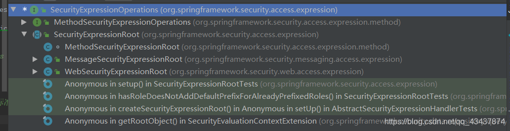 WebSecurityExpressionRoot 实现了 SecurityExpressionRoot 接口,其顶级接口为 SecurityExpressionOperations。